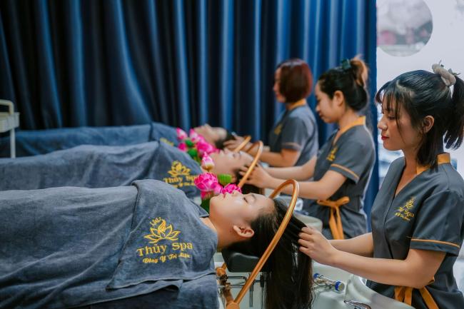 - Gội đầu dưỡng sinh:là chăm sóc tóc và da đầu một cách đặc biệt, kết hợp với việc massage vùng đầu, vai gáy, cổ, lưng,…làm sạch da đầu và tóc với các dầu gội thảo dược từ thiên nhiên như sả, bồ kết, vỏ bưởi, quế,…